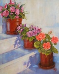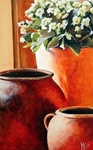 2010Potten met bloemen in de Lesbische avondzon